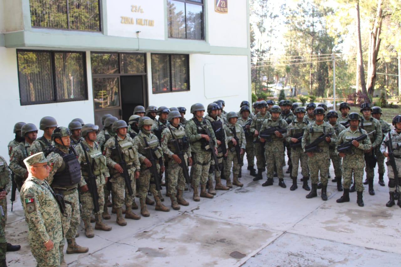 TLAXCALA, Tlax., 4 de agosto de 2024.- En cumplimiento de sus misiones, la Secretaría de la Defensa Nacional (SEDENA) ha desplegado la Fuerza de Tarea Conjunta Oriente, compuesta por personal del Ejército Mexicano y la Guardia Nacional, en el estado de Tlaxcala. Esta mañana, aproximadamente 300 elementos arribaron a las instalaciones de la 23/a Zona Militar en Panotla.