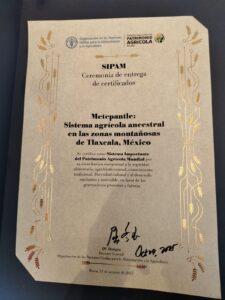 Rivera informó que el reconocimiento será entregado a la presidenta Claudia Sheinbaum, con el propósito de que este sistema pueda replicarse y fortalecerse en distintos puntos del país. Subrayó que el Metepantle, originario de Tlaxcala, representa un ejemplo nacional de resiliencia agrícola y aprovechamiento sostenible del territorio.