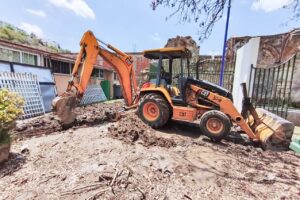 Por tercer día consecutivo, brigadas de “Más territorio y menos escritorio” se desplegaron en distintos puntos de la ciudad, apoyadas con maquinaria pesada como trascabos, grúa y camión Vactor, para atender encharcamientos, realizar labores de limpieza y brindar auxilio a la población.