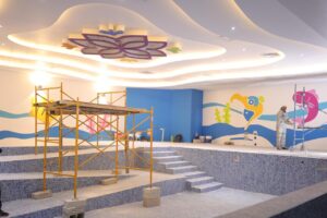 Durante el recorrido, se destacó el desarrollo de áreas especializadas como hidroterapia: “Prácticamente ya está casi concluida esta tina que va a ser la de hidroterapia”, indicó.