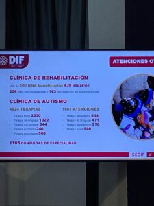 En relación con la atención brindada, señaló que el centro registra entre mil y mil 183 menores con autismo activos, de los cuales 183 han sido diagnosticados mediante herramientas y protocolos especializados. Además, se contabilizan mil 981 atenciones integrales, que incluyen terapias de lenguaje, psicología clínica, psicología familiar, terapia física, terapia ocupacional y consultas con especialistas en medicina física y rehabilitación.