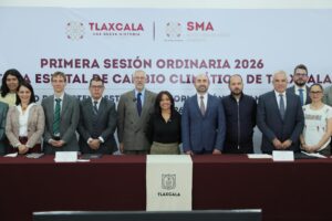 Tlaxcala, Tlax., 18 de febrero de 2026.- En el marco de la Primera Sesión Ordinaria 2026 del Sistema Estatal de Cambio Climático (SECCT), la gobernadora Lorena Cuéllar Cisneros encabezó la firma del convenio “Cruzada estatal por la economía circular y la acción climática desde los territorios”, así como la presentación del Sistema Estatal de Información sobre el Cambio Climático del Estado de Tlaxcala (SEICC), primero en su tipo a nivel nacional.