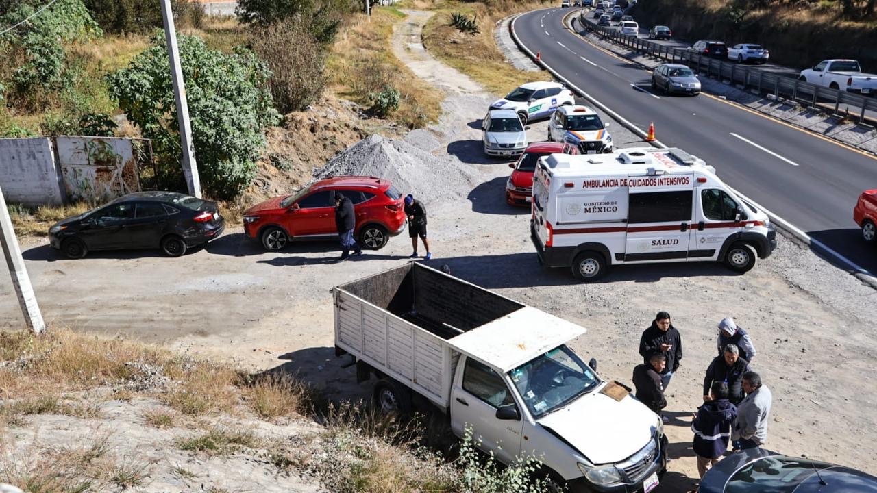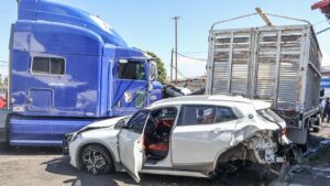 De acuerdo con los primeros reportes, el conductor del tráiler intentó maniobrar para evitar el impacto; sin embargo, terminó embistiendo y arrastrando a diversas unidades, entre ellas un automóvil BMW color blanco, una camioneta Renault gris, una camioneta de tres toneladas y otro tractocamión blanco, dejando al menos cuatro vehículos con severos daños materiales.