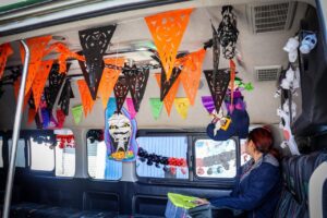 Durante la jornada, los choferes participaron en un concurso interno que premió la creatividad en la decoración de los vehículos y el maquillaje alusivo a la festividad.